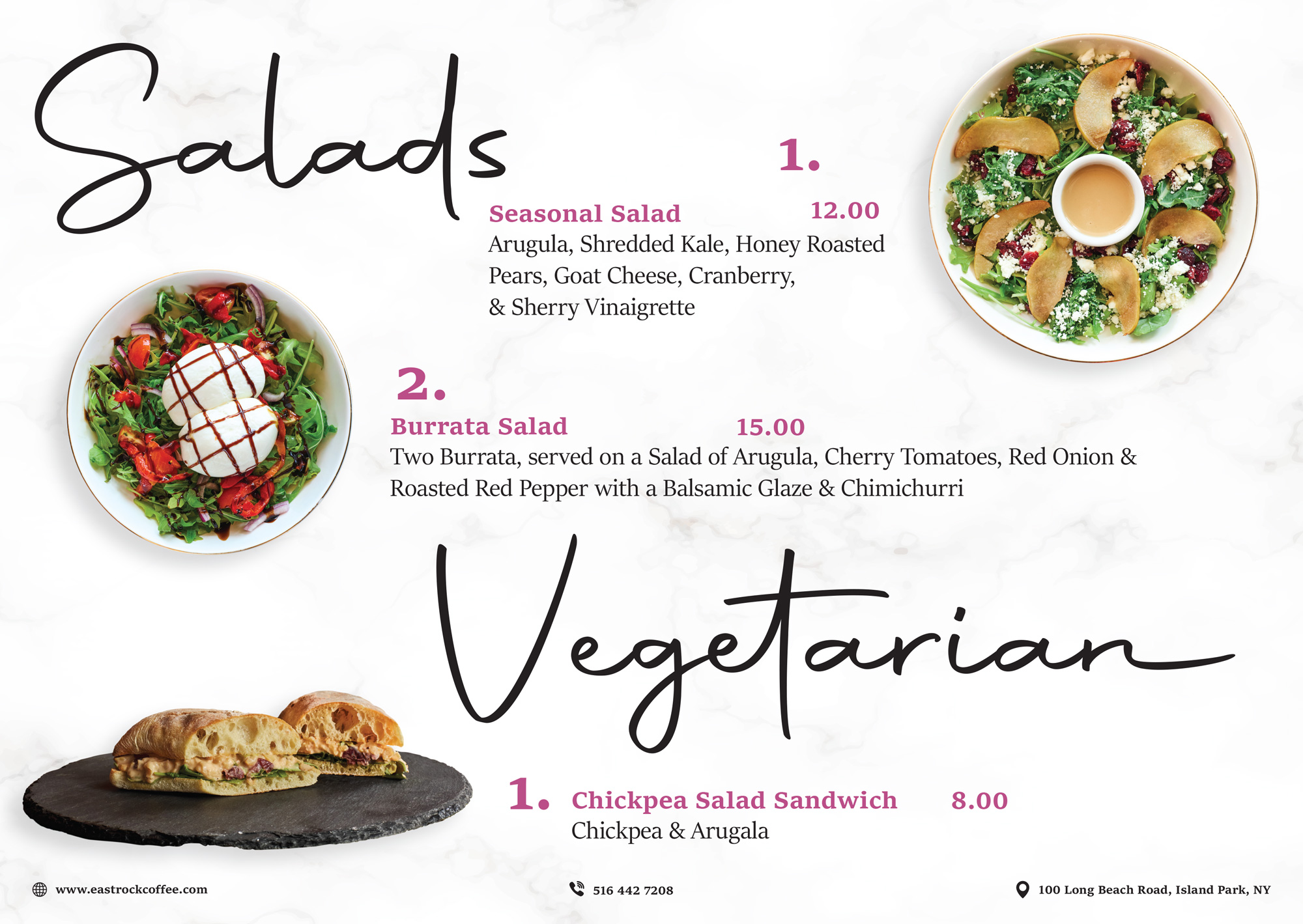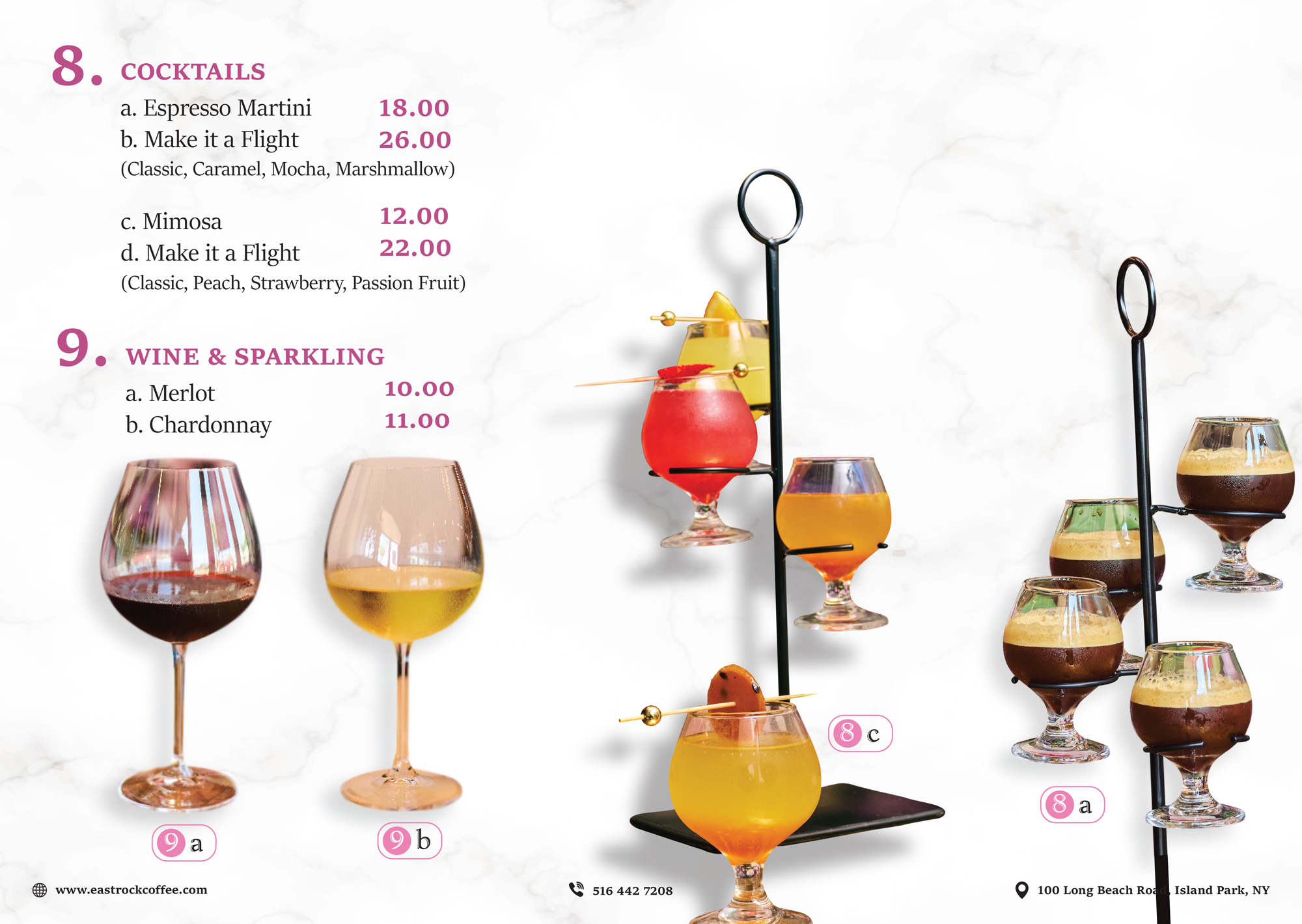 From hand-pulled espressos and signature lattes to vibrant salads, artisan pastries, and decadent treats, each dish and drink is made with thoughtfully sourced ingredients and bold, refined flavors. Whether you’re here for a morning ritual, a lingering brunch, or an evening wind-down, our menu is designed to delight your senses and elevate the everyday.